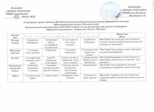«Ақбота бөбекжайы» МКҚК «Тілге бойлау» пилоттық жобасын іске асыру жоспары