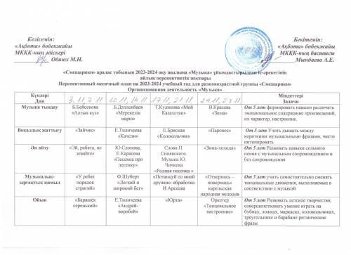«Ақбота бөбекжайы» МКҚК «Тілге бойлау» пилоттық жобасын іске асыру жоспары