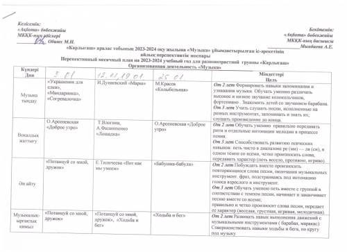 «Ақбота бөбекжайы» МКҚК «Тілге бойлау» пилоттық жобасын іске асыру жоспары