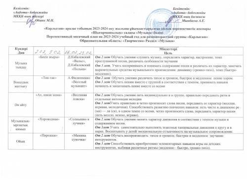 «Ақбота бөбекжайы» МКҚК «Тілге бойлау» пилоттық жобасын іске асыру жоспары