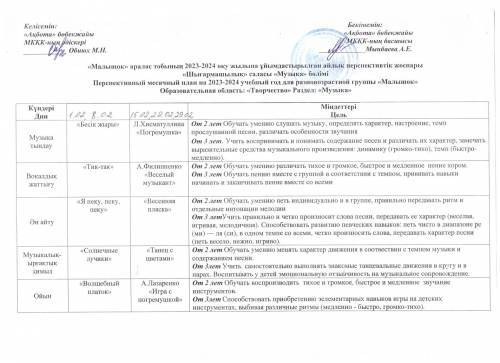«Ақбота бөбекжайы» МКҚК «Тілге бойлау» пилоттық жобасын іске асыру жоспары
