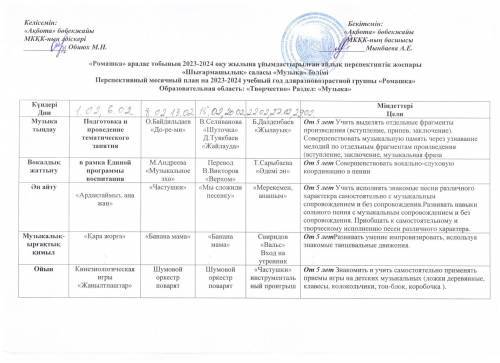 «Ақбота бөбекжайы» МКҚК «Тілге бойлау» пилоттық жобасын іске асыру жоспары