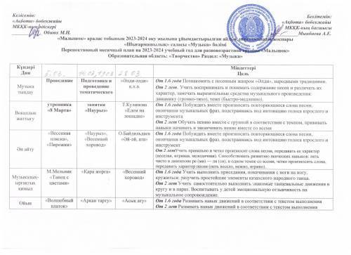 «Ақбота бөбекжайы» МКҚК «Тілге бойлау» пилоттық жобасын іске асыру жоспары