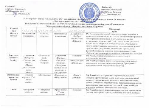 «Ақбота бөбекжайы» МКҚК «Тілге бойлау» пилоттық жобасын іске асыру жоспары