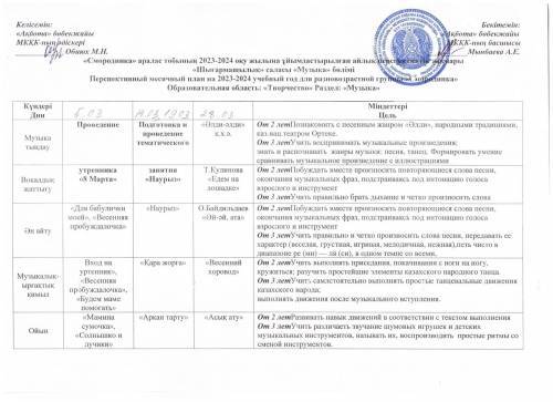 «Ақбота бөбекжайы» МКҚК «Тілге бойлау» пилоттық жобасын іске асыру жоспары