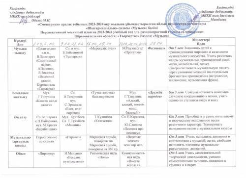 «Ақбота бөбекжайы» МКҚК «Тілге бойлау» пилоттық жобасын іске асыру жоспары