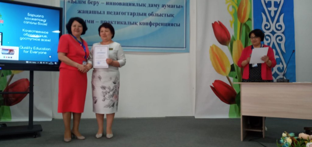 На итоговом педсовете №5 психологу детского сада Артемьевой Т.Н. руководитель Мынбаева А.Е. вручила Благодарственное письмо от РОО