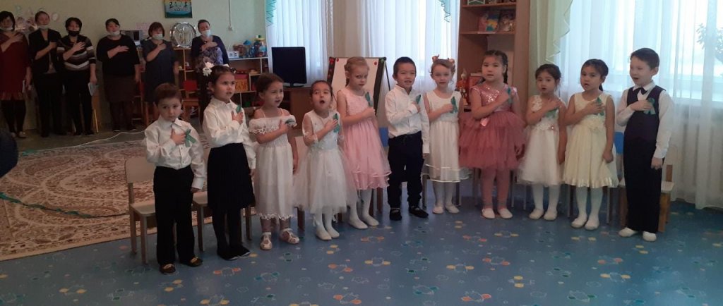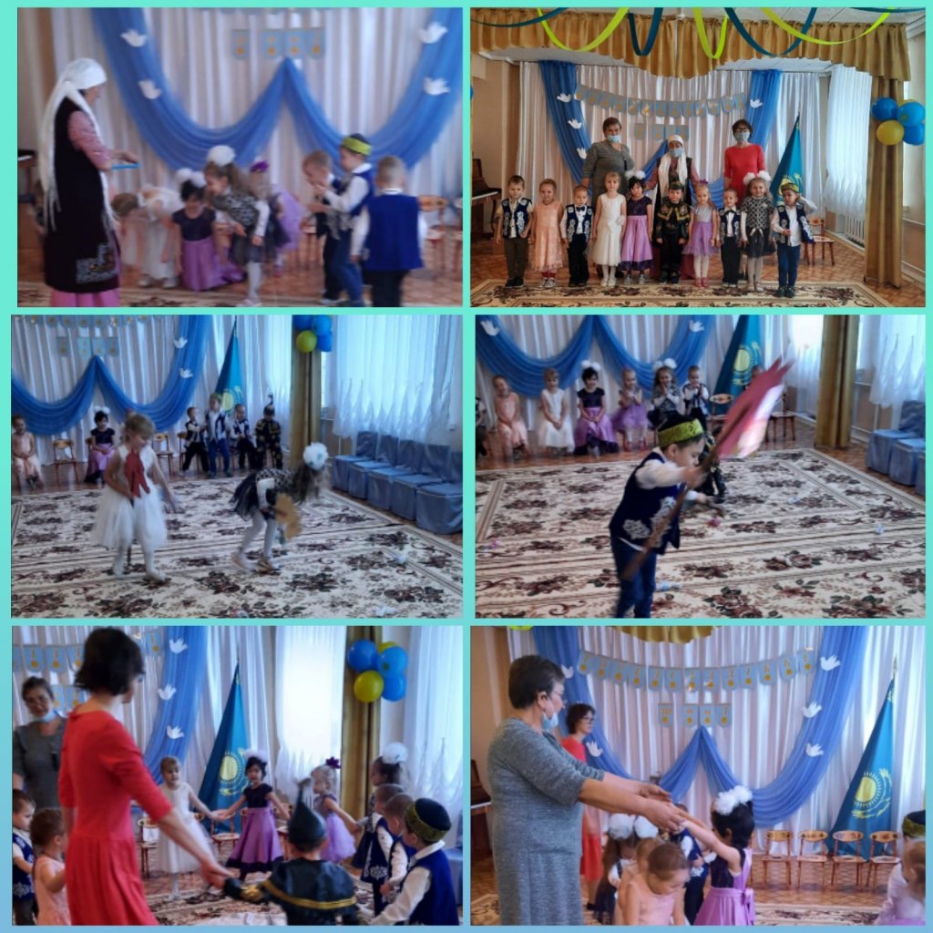 Утренник начался с исполнения гимна РК. Дети рассказывали стихи о родине, пели песни, танцевали, играли в казахские национальные игры.