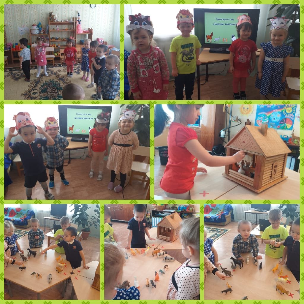 На занятии дети рассматривают игрушки, фигурки, картинки и фотографии с изображением домашних животных. Составление детьми простейших рассказов о своих домашних животных.