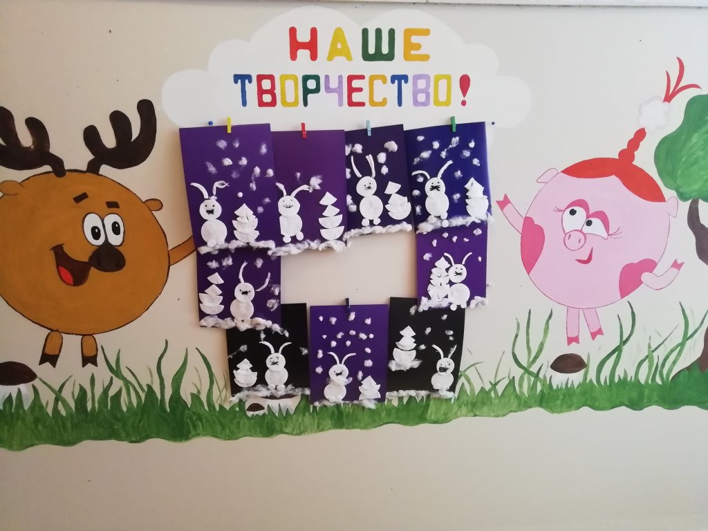 Очередное интересное занятие прошло в предшкольной группе по аппликации на тему «Зайчик в зимнем лесу» с...