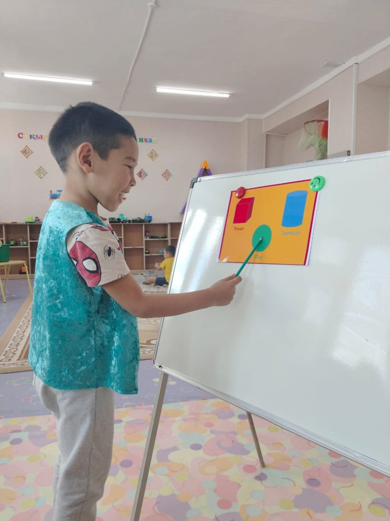 10 көлеміндегі сандарды тура, кері санауды қайталау. Балаларға көлемді денелер: шар, текше, цилиндр туралы түсінік беру. Қоршаған ортада сәйкес пішіндегі заттарды табуға үйрету.