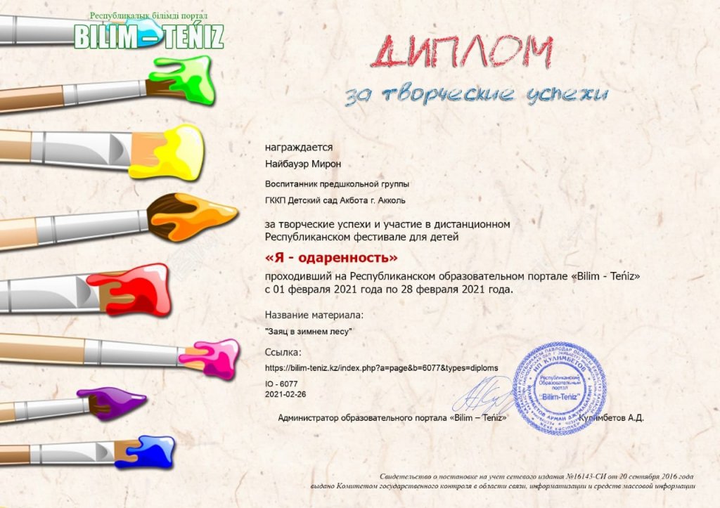 Государственное коммунальное казенное предприятие "Детский сад "Акбота"" при отделе образования Аккольского района