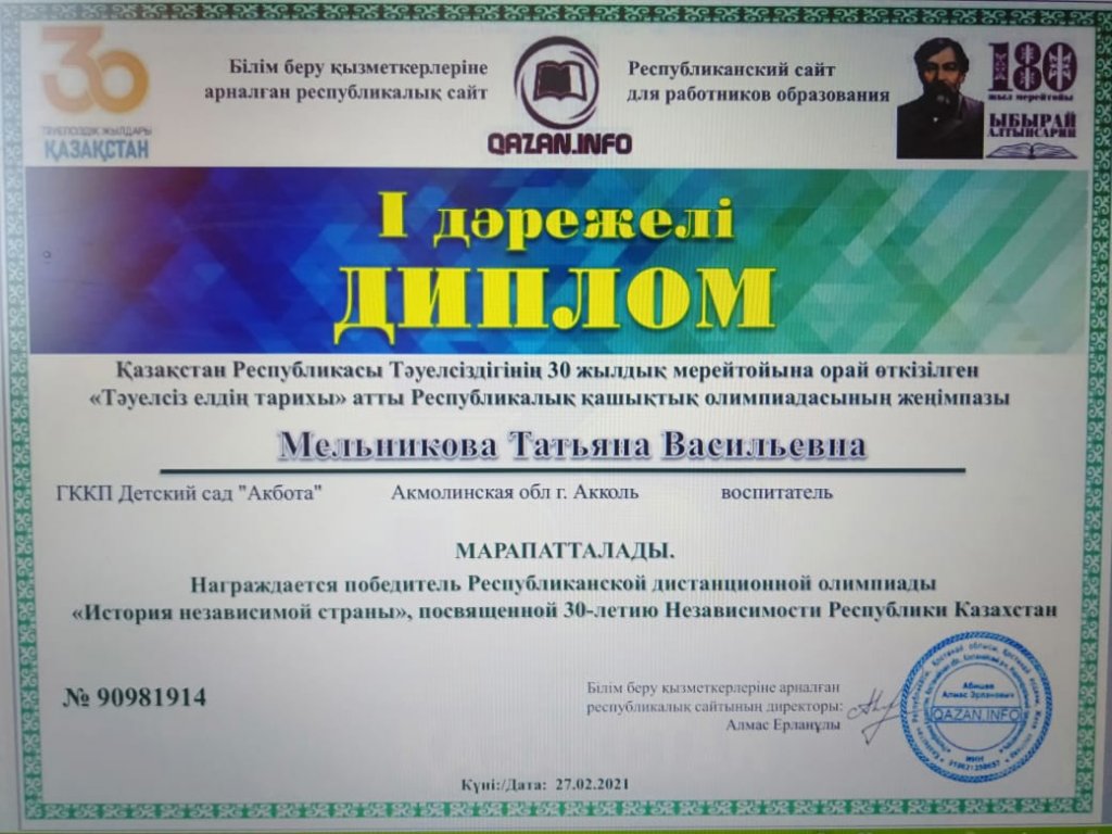 Олимпиада «Қазақстан Республикасы Тәуелсіздігінің 30 жылдығына арналған тәуелсіз ел тарихы»