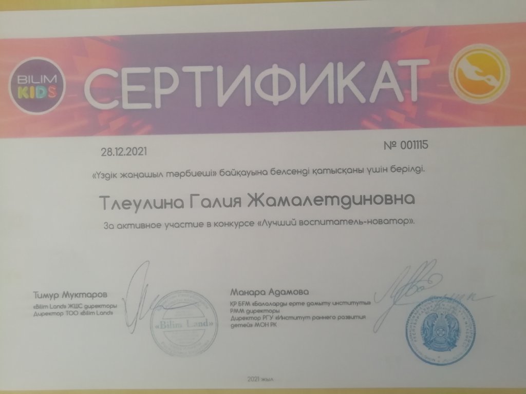 Бақшамыздың инновациялық қызметі
