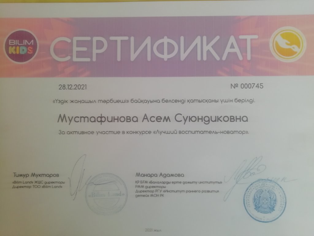 Үздік мектепке дейінгі ұйым 2022