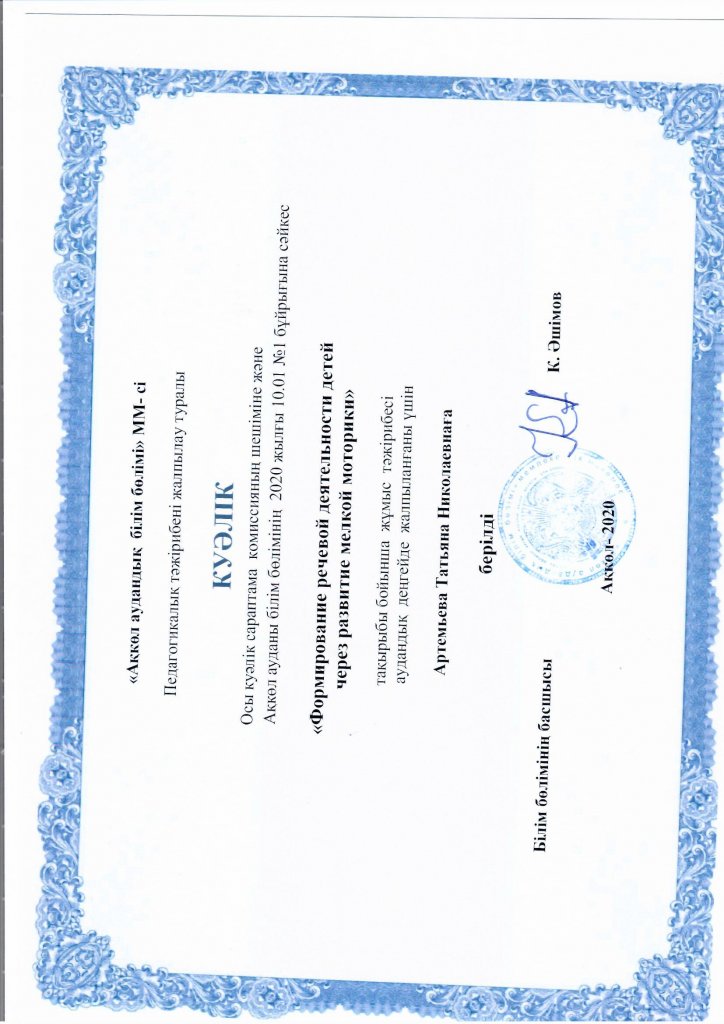 «Қолдың ұсақ моторикасын дамыту» кеңесі