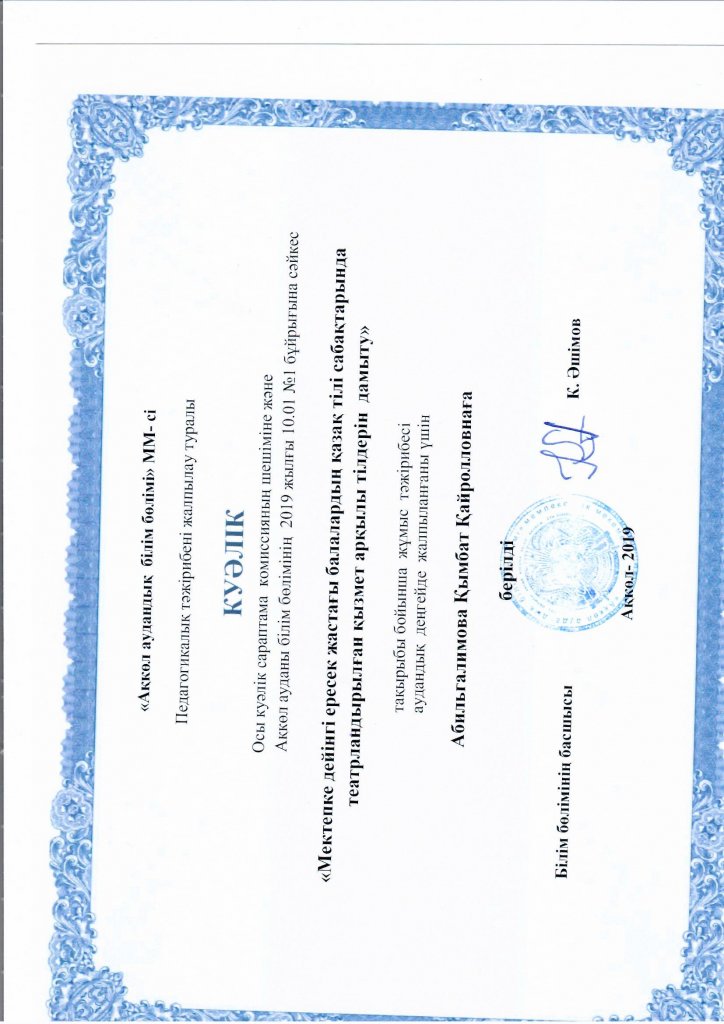 Хаттама №1 26.09.2019ж.